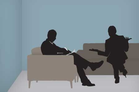הפסיכולוג והמטופל יושבים על כורסאות זה מול זה. אנחנו נכנסים באמצע הטיפול, ישר לתוך שטף הדיבור של המטופל.