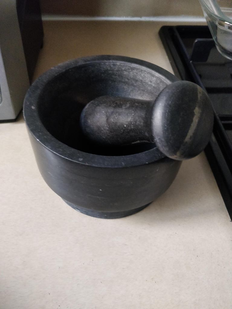 כשנכנסתי לאוהל שמתי לב שבפינת האוכל יש שני חפצים לא מוכרים. כשהתקרבתי אליהם זיהיתי כי מדובר במכתש ועלי. "כנמת!", התחלתי לצעוק, "כנמת המקומית! איפה את?".