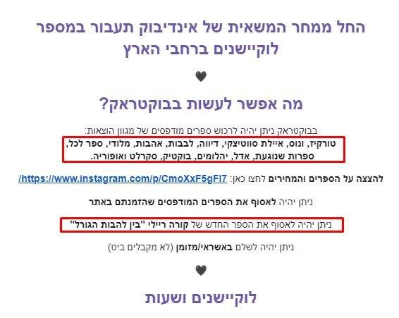 ״זה 'יוליסס' שאתה מחביא שם, או שאתה פשוט שמח מאוד לראות אותי?״ רצתה לזרוק לעברו בטון הצקצקני שסיגלה לעצמה בעשרות שנות עבודה בספרייה העירונית, בהן העבירה תחת הסורק האלקטרוני עשרות אלפי רומנים רומנטיים בזויים. במקום זאת היא לעלעה את המילים. ״אאא… אפשר לעזור?״