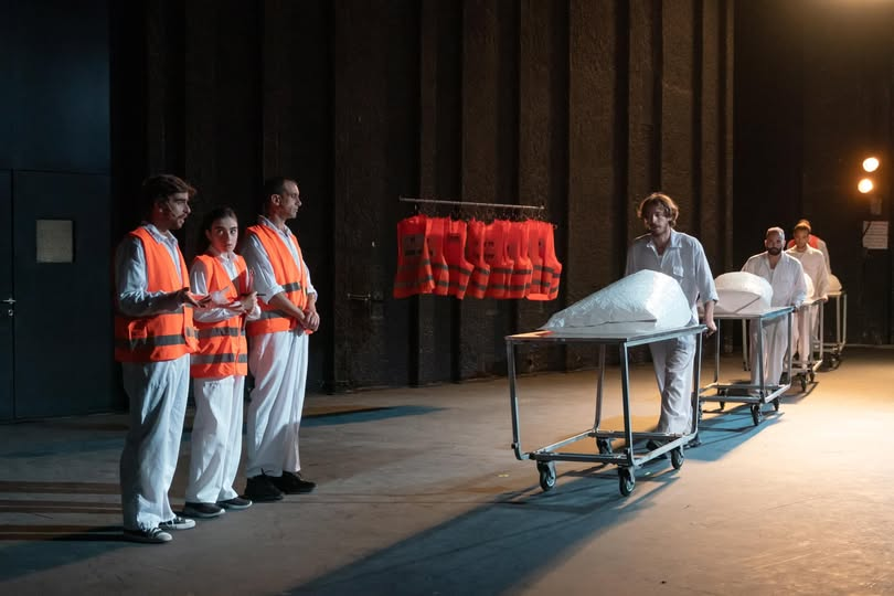 כבר למן ההתחלה ברור לנו שהשחקנים מודעים לעובדה שהם רק מייצגים דמויות אמיתיות. כך, למשל, יוסף לובש עם כניסת הקהל וסט כתום שעליו הכיתוב ״אני״, אותו הוא מעביר לשחקן שחר נץ, שמגלם אותו לכל אורך ההצגה. המבט החיצוני הזה כמו אומר לנו: ״ברור לנו שאנחנו רק שחקנים שמתיימרים להיכנס לנעליהם של אנשים בשר ודם. אבל כמו שאין לנו באמת אפשרות לחוות את מה שהם חוו, כך גם יכולת המימזיס, חיקוי המציאות, של התיאטרון מוגבלת״. ודווקא המודעות למגבלה היא שהופכת את הצפייה לעשירה כל כך, צבועה בגוונים עדינים של אירוניה, ובעיקר – נותנת לנו לא רק אפשרות להתמודד עם הזוועה, אלא מאפשרת גם הפניית מבט אל החיים, אלו שמתחת לכתמי הדם מנוקדים לעתים גם ברגעים של יופי ואנושיות.
