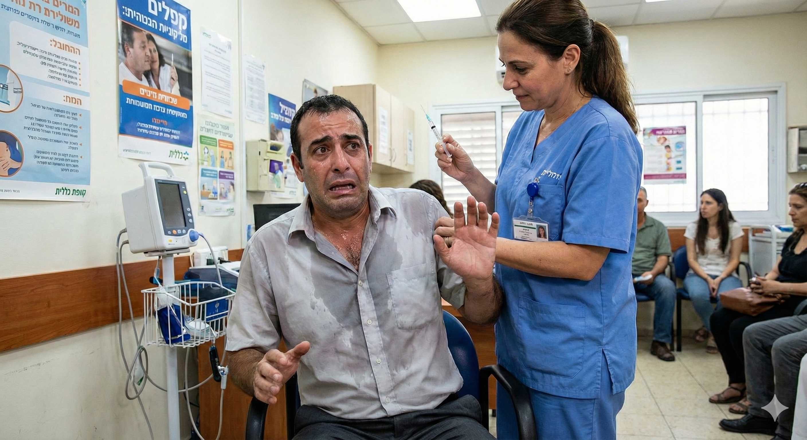 גבר: סליחה, אני לא מבין… בסך הכל באתי לחיסון שפעת. שלחתם לי סמס.